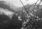 Tramonto con nebbia sulla sottostante pianura. Originale a colori, elaborato in BN con Photoshop