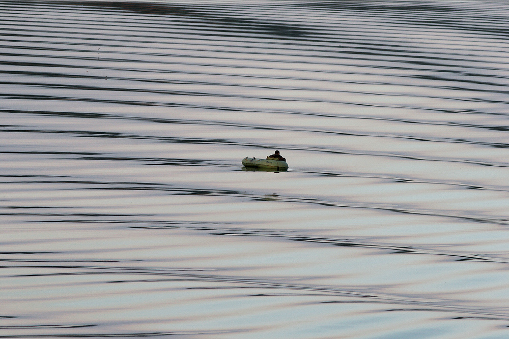 A me piace davvero molto. Il soggetto al centro mi sembra conferire staticità. Come dire che il canotto è al centro perchè deve apparire fermo, tutto attorno non c'è nulla e non c'è nessuna direzione da poter prendere. Fosse vicino ad un margine sembrerebbe avere un movimento, una direzione, una via d'uscita. Opinione personalissima, mi sono imbattuto per caso in questa foto e non ho potuto fare a meno di commentarla, da quasi neofita.
