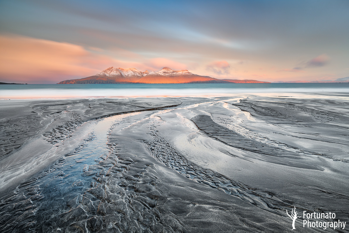 Posso direi di essere stato su quest'isola insieme a Fortunato (non in questa occasione però) e le texture sulla sabbia sono sempre straordinarie, anche grazie alle evidenti maree e l'isola di Rùm, quando si scopre per la prima volta sullo sfondo, ti toglie il fiato. Anche vento, grandine e neve lo fanno