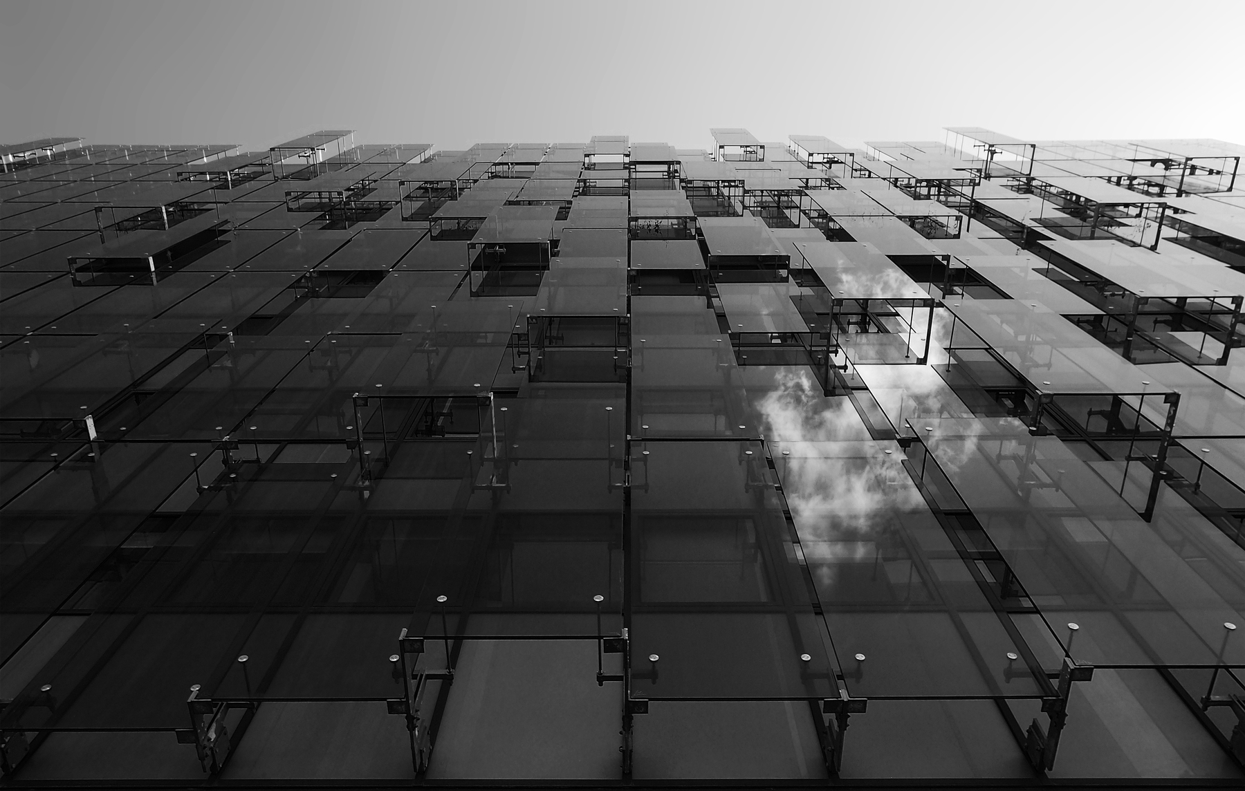 Con questo punto di vista è tutto più chiaro, la precedente svelava poco o nulla del soggetto. Avrei dato maggior luminosità per esaltare gli spazi vuoti tra un vetro e l'altro.