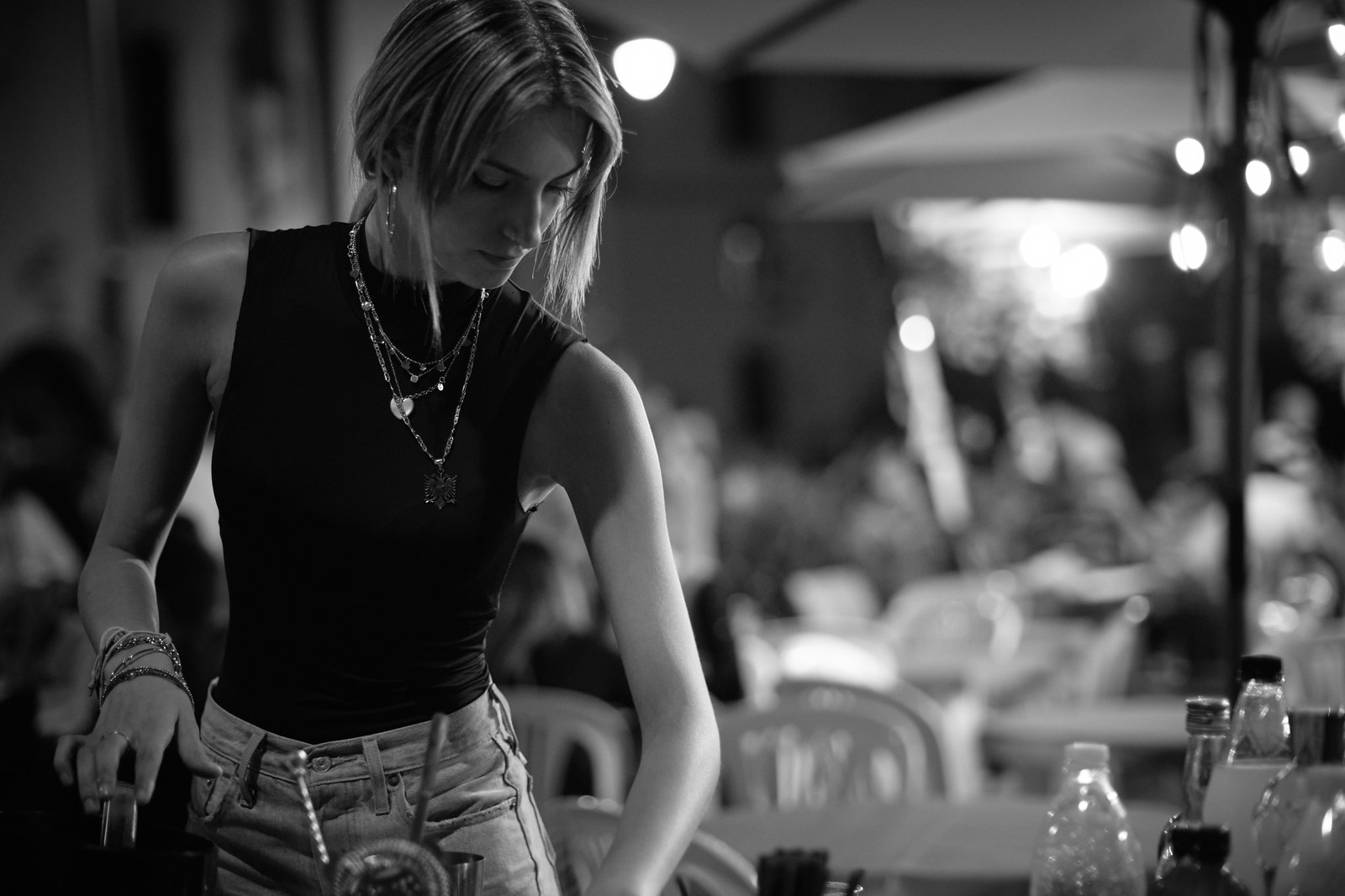 La messa a fuoco selettiva esalta la figura femminile in questo momento life.