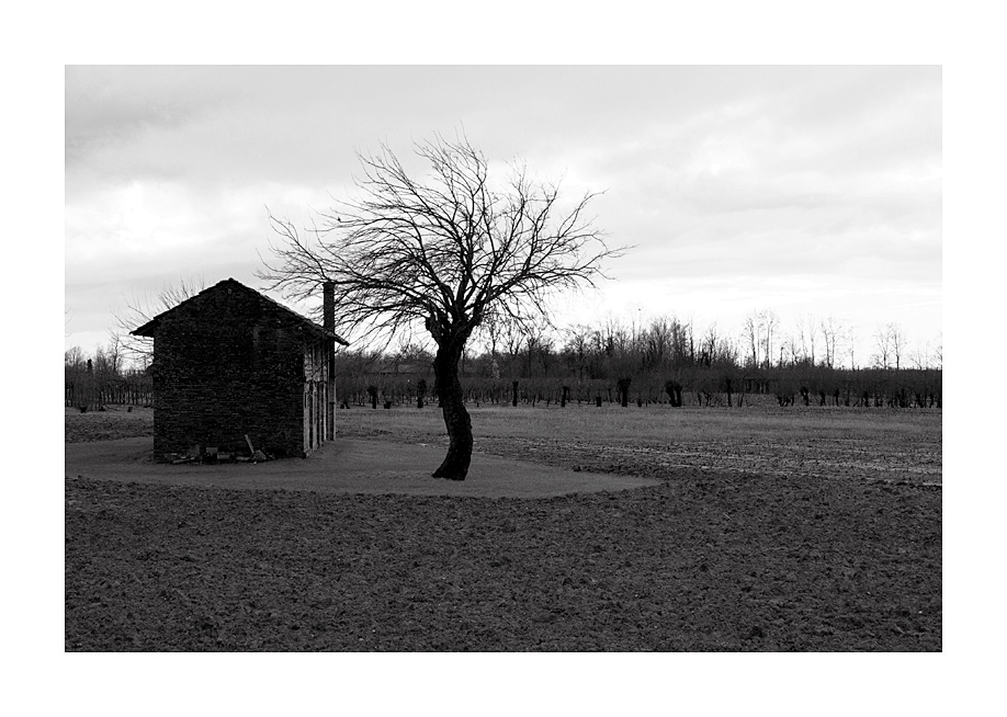 X Alessandro IMHO, con una luce avversa come quella dell’immagine usufruire, nella conversione in b\n, della massima estensione della scala dei grigi non può che giovare all’insieme della composizione, così ho preferito lasciare gli elementi principali più scuri (casa e albero) in modo che spiccassero dal resto della scena. Tu come avresti agito?