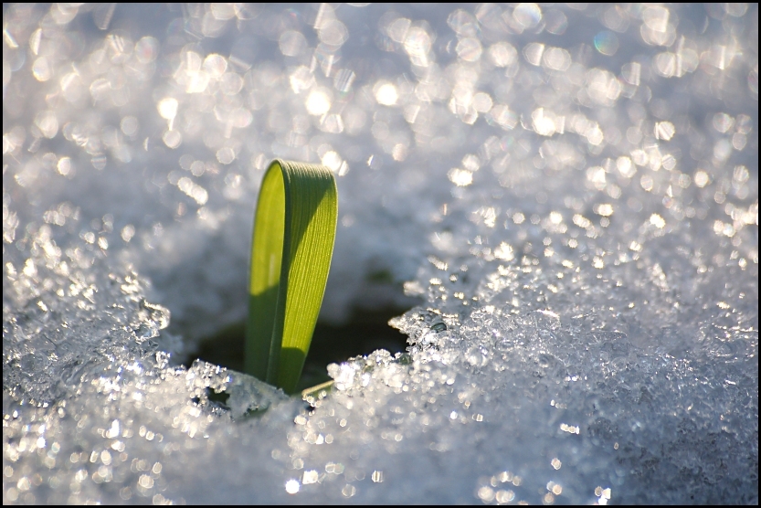 sicuramente qui il soggetto principale e questi filo d erba che non ha accettato di essre sopraffatto dal ghiaccio sembra quasi che abbia sentito il richiamo del sole cosi e fuori uscito fuori con grande forza