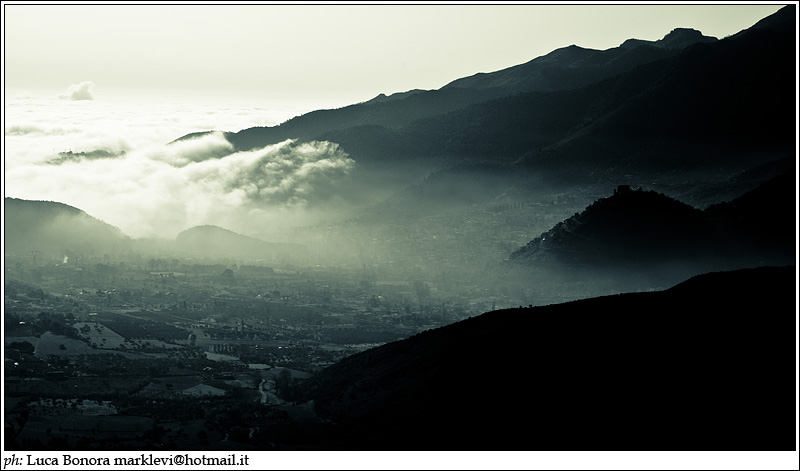 | Davvero molto bella, bello il gioco di luce sulla pianura e le varie tonalità di grigio/nero sulle montagne. |
