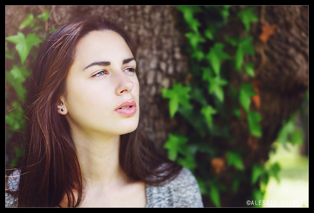 Bello l'accenno di sfumatura luminosa sulla sx (penso sia stato creato in post), bella la composizione a sfruttare la regola dei terzi, e buone le cromie su di lei con un lieve accenno di giallo/verde sotto al mento, dovuto al riflesso delle vegetazione, ma risolvibile.