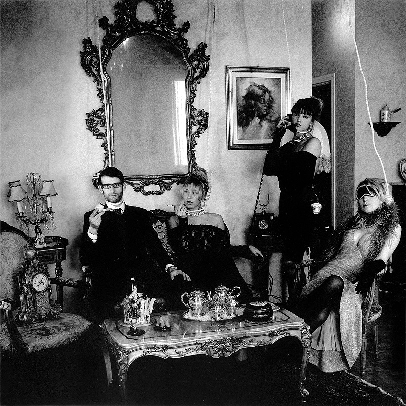 Io, la tua foto l'ho intepretata così, da subito: La coppia al centro, i padroni di casa, persi tra i vizi che il loro agio economico gli permette di mantenere. Lui lo vedo come il "Re leone" della situazione, molto compiaciuto del suo ruolo, ha a disposizione, da una parte, col bene tacito della moglie, 2 compagne di giochi (le corde mi davano un senso di sottomissione....bondage) e dall'altra il tempo da dedicare a vizi e peccati!