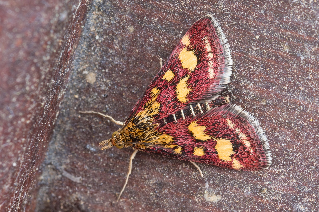 La Pyrausta purpuralis è una falena graziosa, ma molto piccola, per cui pubblico direttamente un ritaglio.