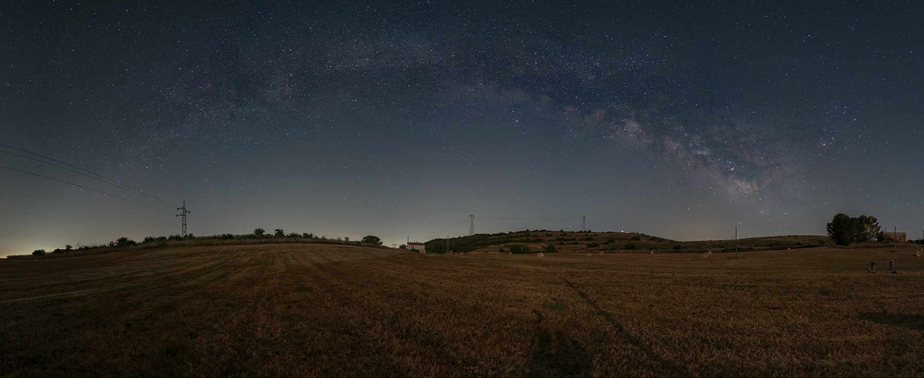 L'immagine è una panoramica di 10 scatti verticali, che in realtà sono 20, poiché 10 per il cielo con astro inseguitore e 10 per la parte del terreno senza astro inseguitore. Elaborazione del cielo con software PixInsight che uso per le mie foto del deep sky e poi Photoshop CC 2020 per il merge e l'unione tra cielo e terreno.