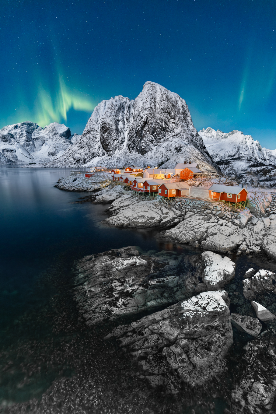 Una delle immagini che più mi ha impegnato nell'ultimo periodo. In primis la gamma dinamica ampissima. Tenere a bada la (poca) aurora e contemporaneamente le luci dei Rorbuer non è stata impresa facile. Trattasi infatti di due scatti, il secondo dei quali solo e soltanto per le "altissime luci".