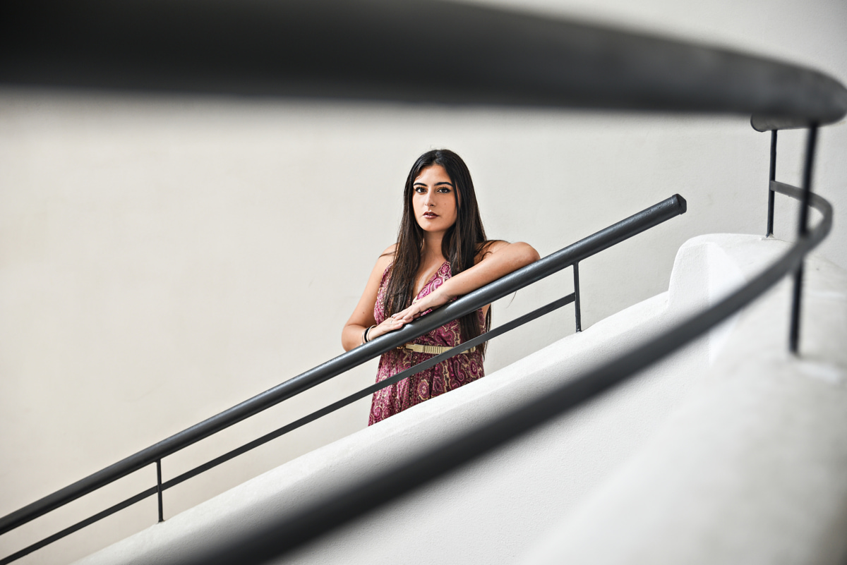 | Mi piace molto il gioco delle diagonali (ringhiera inferiore, corrimano e braccio della ragazza). Umna piacevolissima geometria. Con la ringhiera superiore si crea un triangolo anche questo elemento piacevole nelle composizioni. Resta però il fatto che la ringhiera superiore fuori fuoco e "prepotente" a mio modesto avviso sbilancia la composizione! |