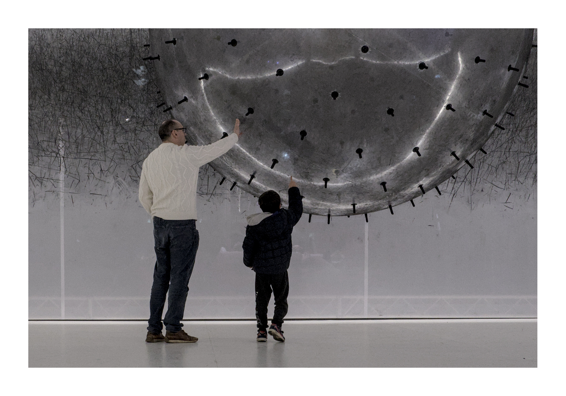 Grazie mille. Il soggetto è una sfera di gomma traslucida gonfiata ad elio che vola in una stanza, quegli spuntoni che vedete sono carboncini che "disegnano" sulle pareti di tessuto inizialmente completamente bianche della stanza creando dei quadri. E' l'interazione con i visitatori della mostra che rende la palla e la sua stanza un'opera d'arte. Si trova alla mostra Euphoria di Roma. _________________ Le mie foto su Flickr