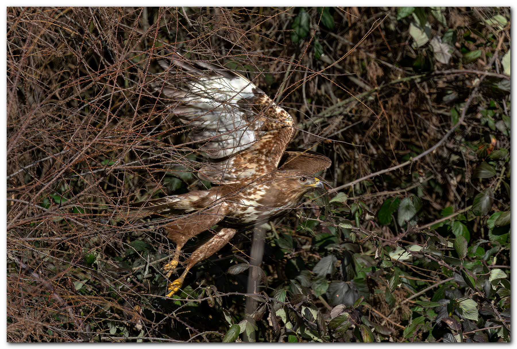 Fabiana uno scatto colto letteralmente al volo, una scena di pochi secondi con la fortuna di esserne spettatore. Gli uccellini, scelti come preda, hanno solo una via di scampo che è quella di sfruttare la loro minor stazza nell'intrufolarsi nel foto dei rovi dove il rapace fa fatica ad entrarci. La scena si è svolta a 4-5 metri da me ed è durata pochissimi secondi. Si punta e si scatta senza pensare.
