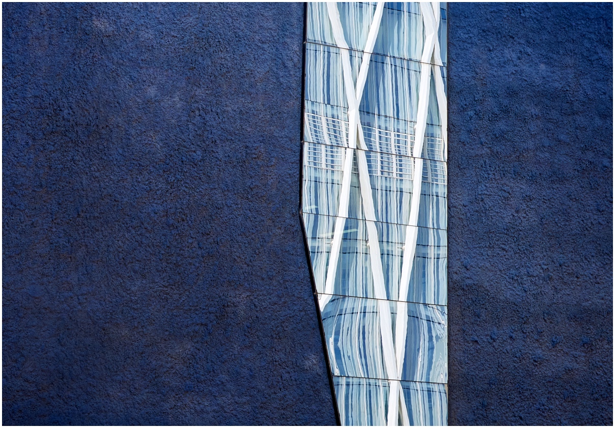 Qui metti in risalto ottimamente la metericità della superfice muraria, il riflesso bianco distorto stacca molto bene sul bel blu del muro.