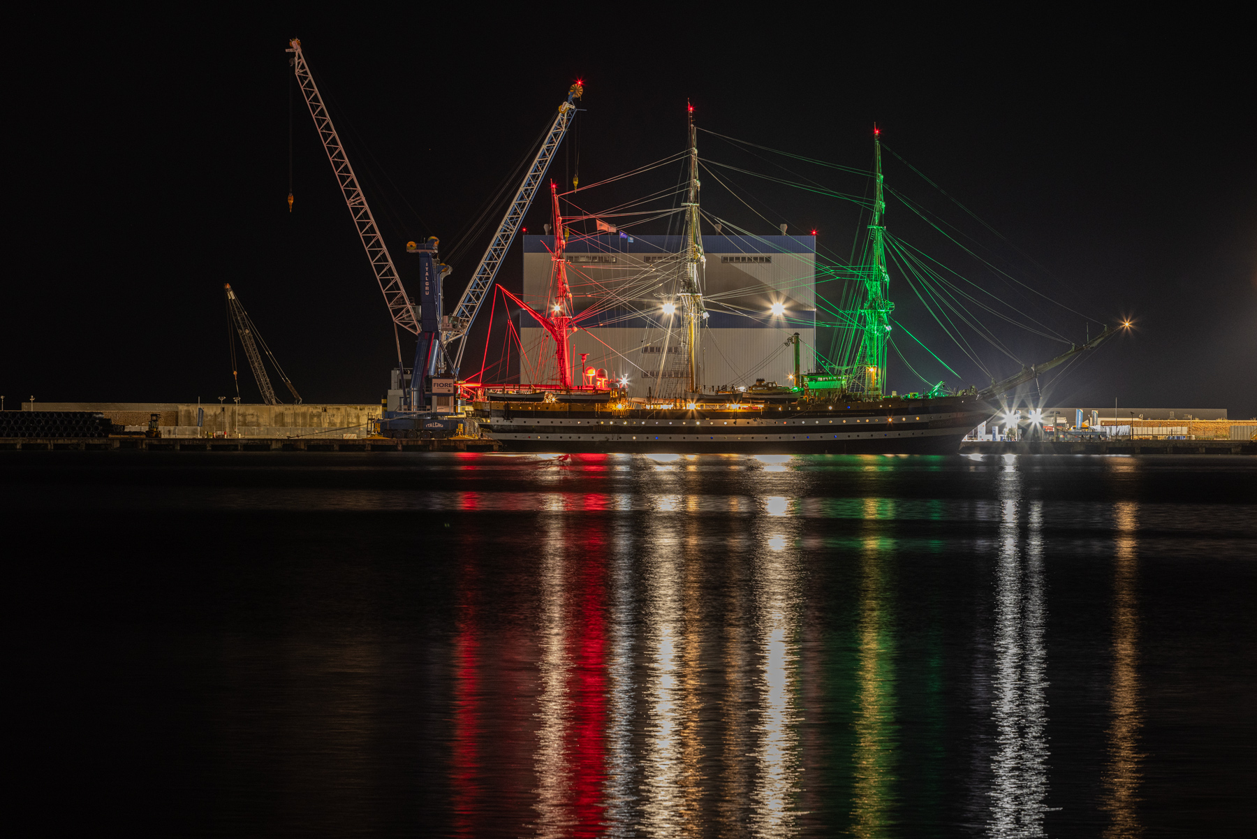 Fantastica la Vespucci in notturna!Bellissimi i colori ed i riflessi,ottima esposizione. Ciao,Sergio.