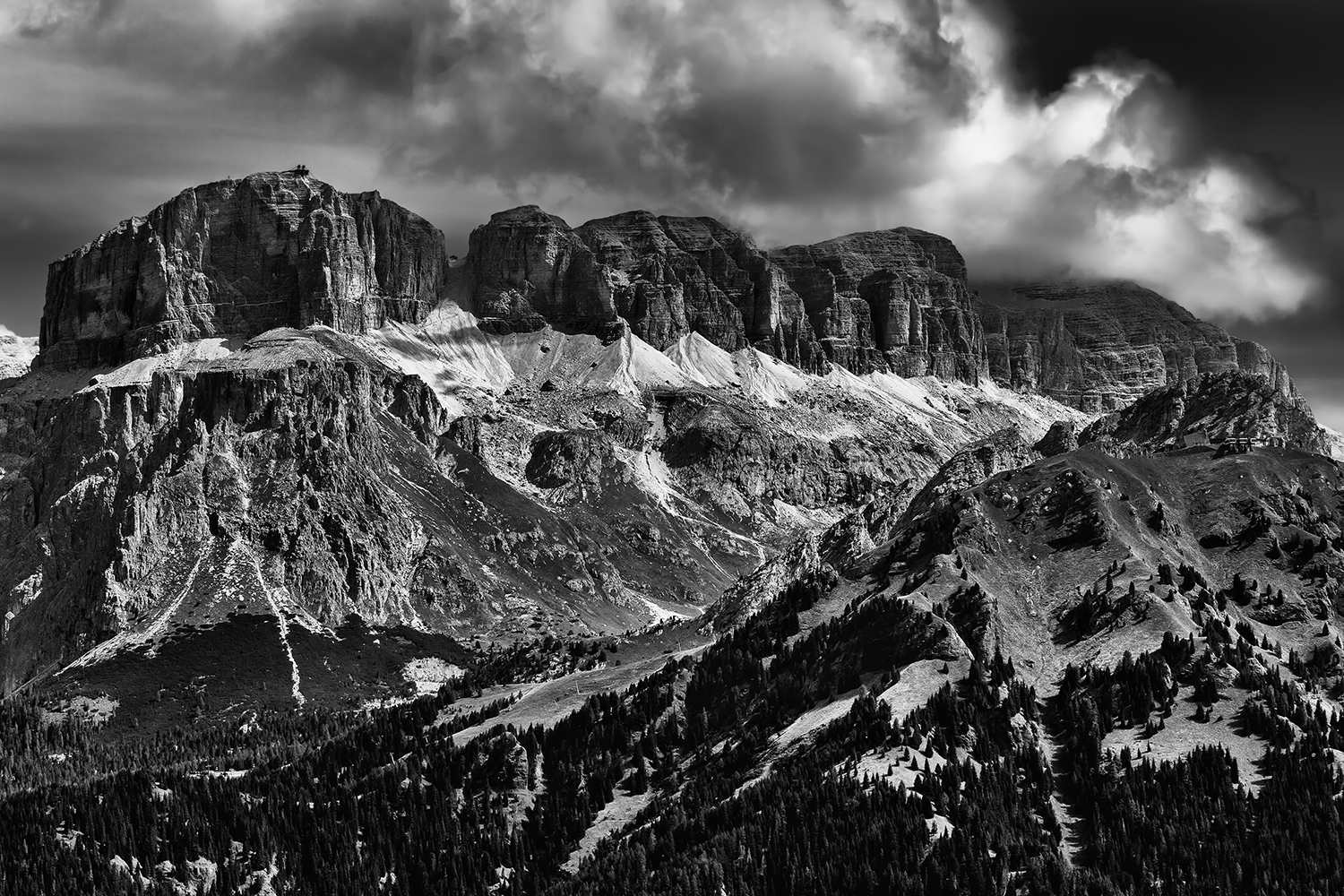 L'immagine è coerente con tante tue altre, con un bianconero curato e personale, che vuole quasi trattare le rocce quasi come enormi sculture. Anche questa visione mi piace molto: il luogo è famoso ed è famoso, perché è tremendamente bello. E sì: quel canalone ghiaioso, stretto e assai ripido, di Forcella Pordoi resta nella memoria di chi lo ha percorso almeno una volta, nel fragore dei massi che si muovono se ci si trova in discesa oppure nella fatica della progressione se lo si risale (anche se oggi c'è una traccia zigzagante che agevola). Un saluto, Francesco _________________ Fotocamere Olympus OMD e PEN, Panasonic G3. Software GIMP