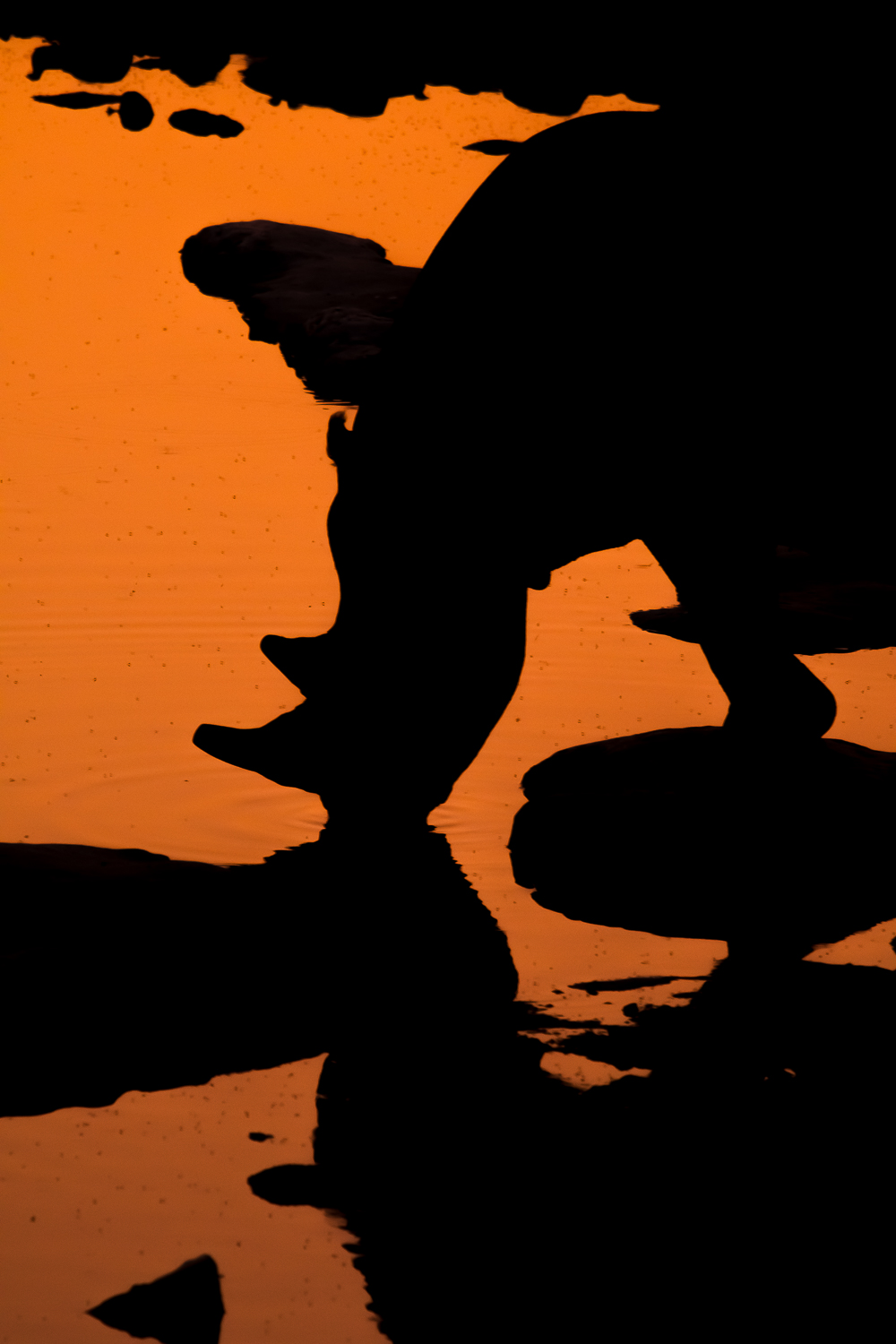 Il forte arancione è dato dalla luce del tramonto + luce arancione della pozza a cui si abbeverava (Halali waterhole dentro Etosha)
