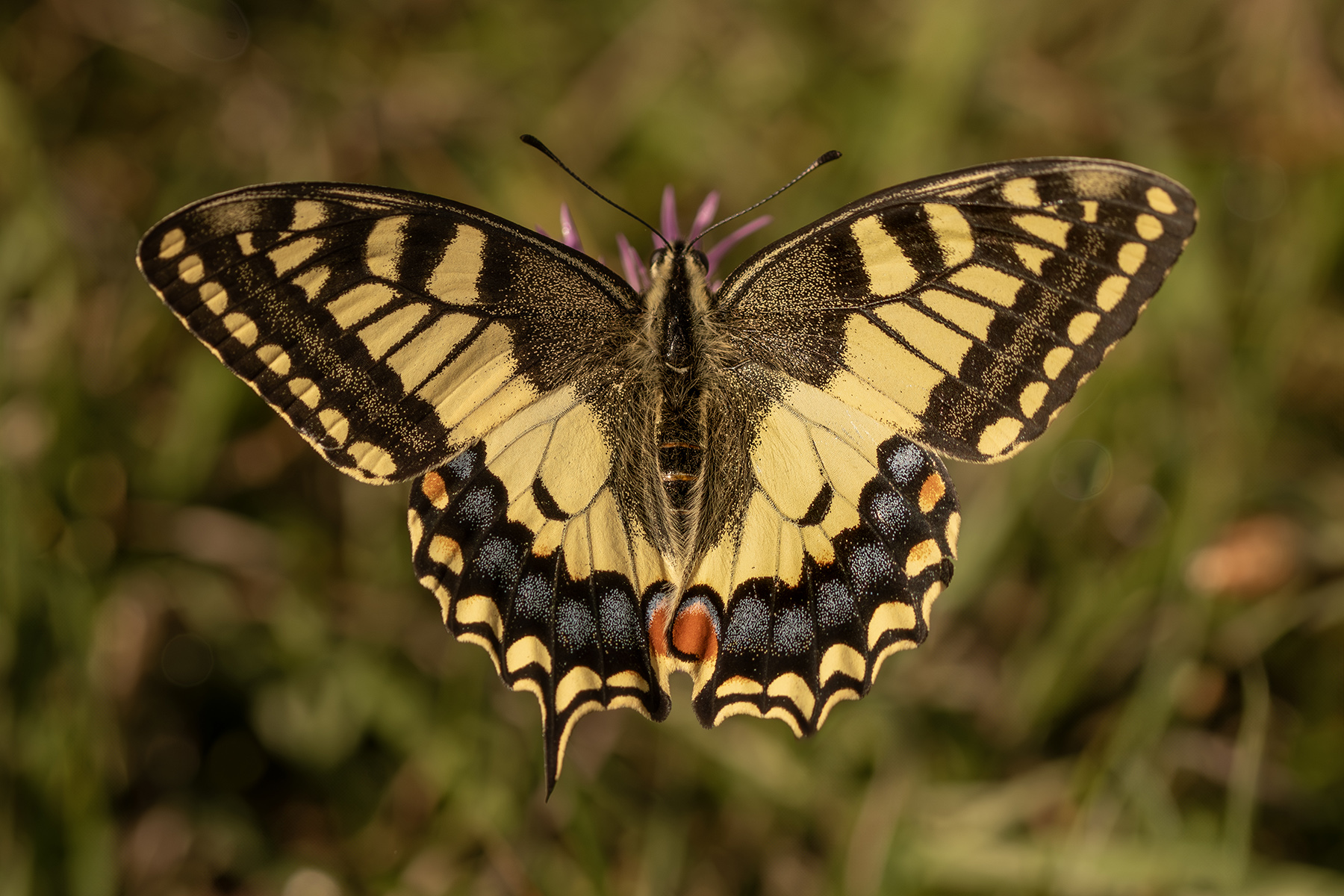 Concordo sulle tonalità troppo calde e su una leggera schiarita allo sfondo. Vederla ad ali aperte però è uno spettacolo. Questa farfalla ha la particolarità di muovere continuamente le ali anche quando è posata e si sta alimentando, pertanto è difficilissimo riprenderla ad ali completamente spiegate.  _________________ "L'unico rapporto 1:1 che conosco è: 1 possibilità per il soggetto di scappare, 1 probabilità per me di riuscire a fotografarlo" (Ribes)