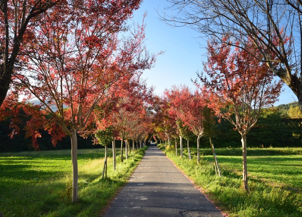 Mi piace la prospettiva centrale che da profondità e tridimensionalità alla scena supportata dagli alberi ai lati.