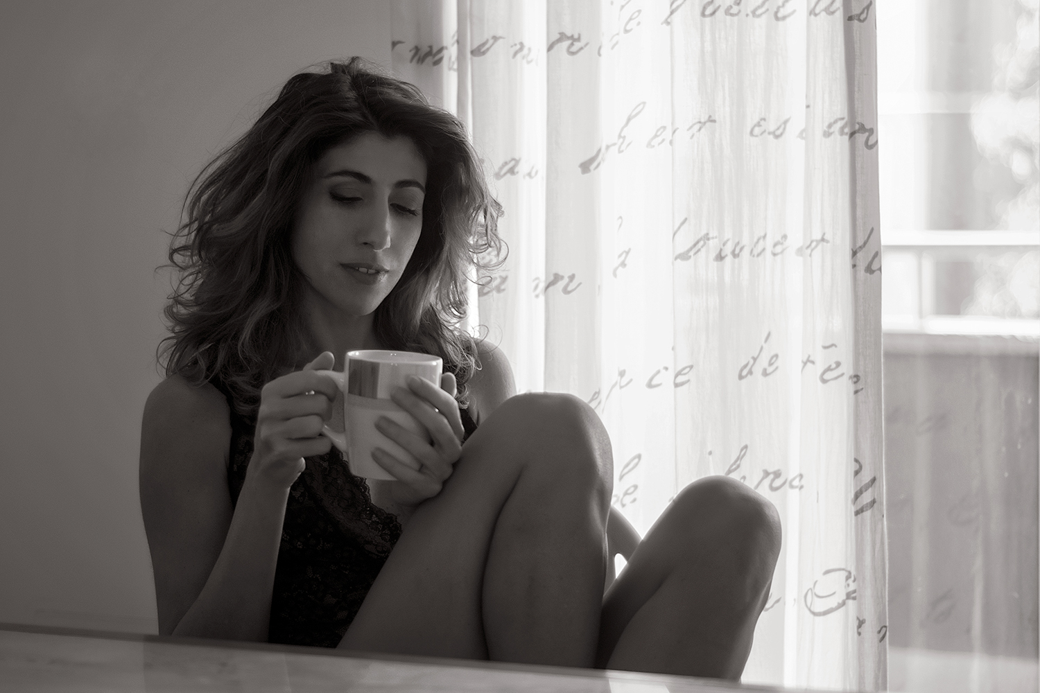 Lo trovo un ritratto delicato e gentile. Un momento di quotidianità, disegnato da una piacevole soffice luce. Lei ha una posa che sa di "coccola". Mi chiedo se avrebbe acquistato più forza se lei avesse sollevato lo sguardo..ma sarebbe stata un'altra foto forse . Mi piace Ciao
