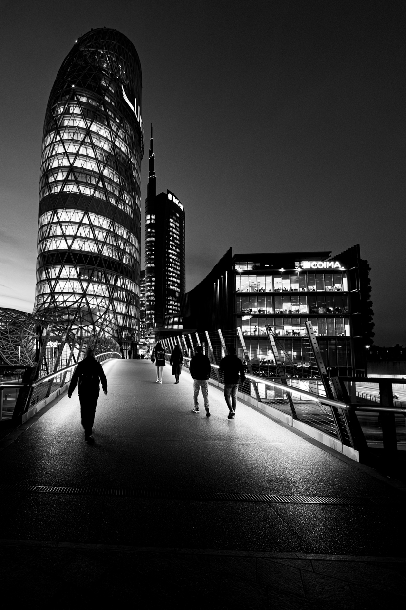 ma che bella, un bellissimo b/n e tutti i pedoni che si spostano verso la piazza Gae Aulenti, davvero un ottimo satto, bravo.
