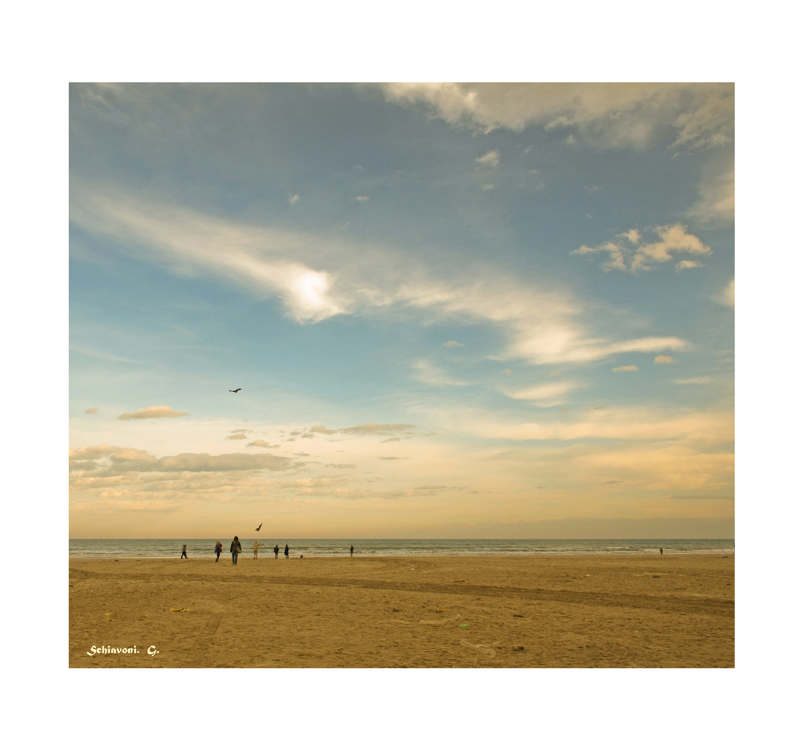 Grande vuoto: molto bella questa immagine dai colori nostalgici, dal cielo maestoso e dalle figurine umane sicuramente felici nel grande spazio libero. Un saluto, Francesco _________________ Fotocamere Olympus OMD e PEN, Panasonic G3. Software GIMP