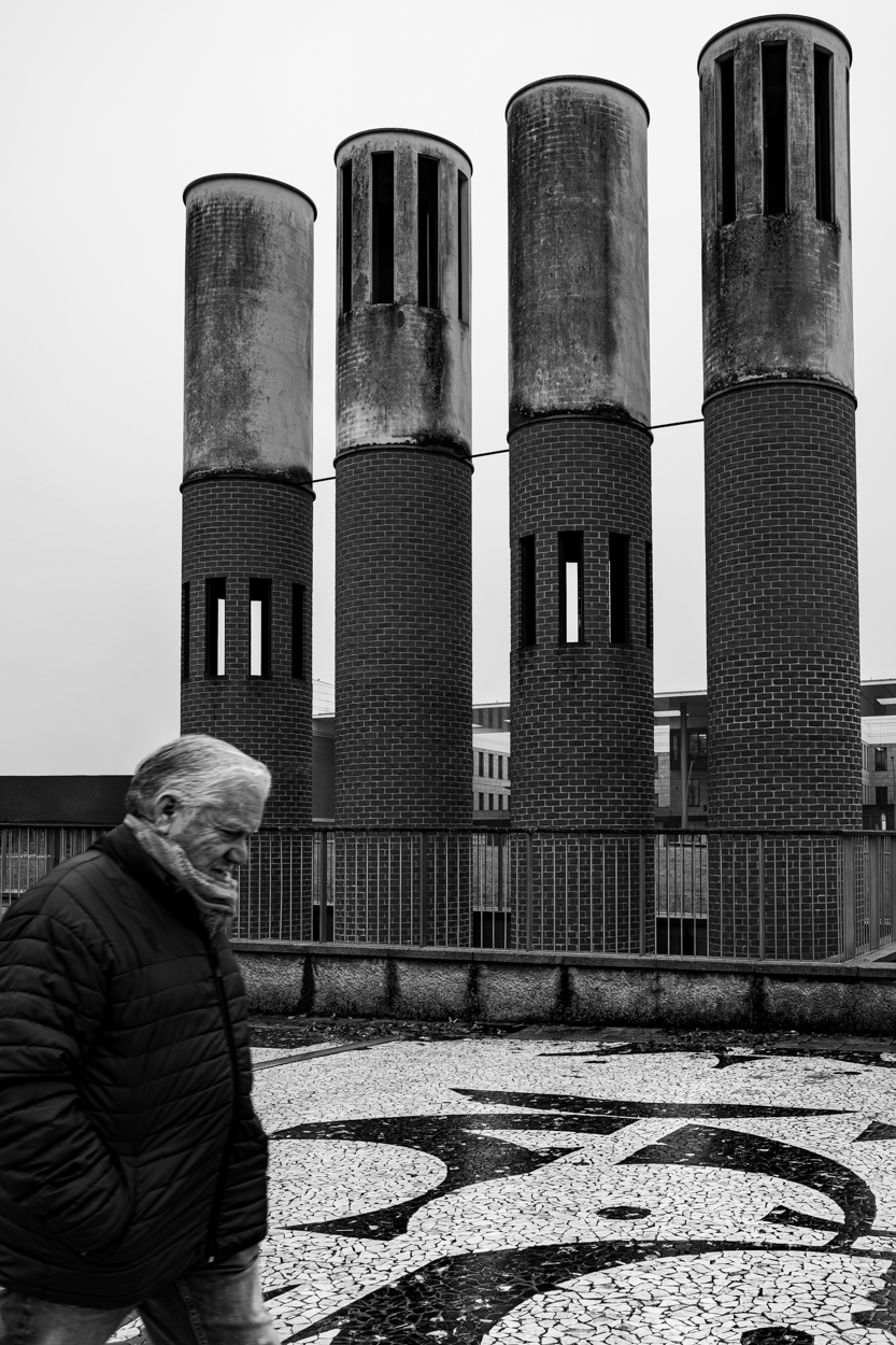 Non so se le "Affinità" del titolo si riferiscono alla verticalità dell'uomo che cammina con la verticalità delle ciminiere, comunque sia lo scatto in bianconero lo trovo molto buono: il contrasto tra luci e ombre mette ben in risalto le forme.
