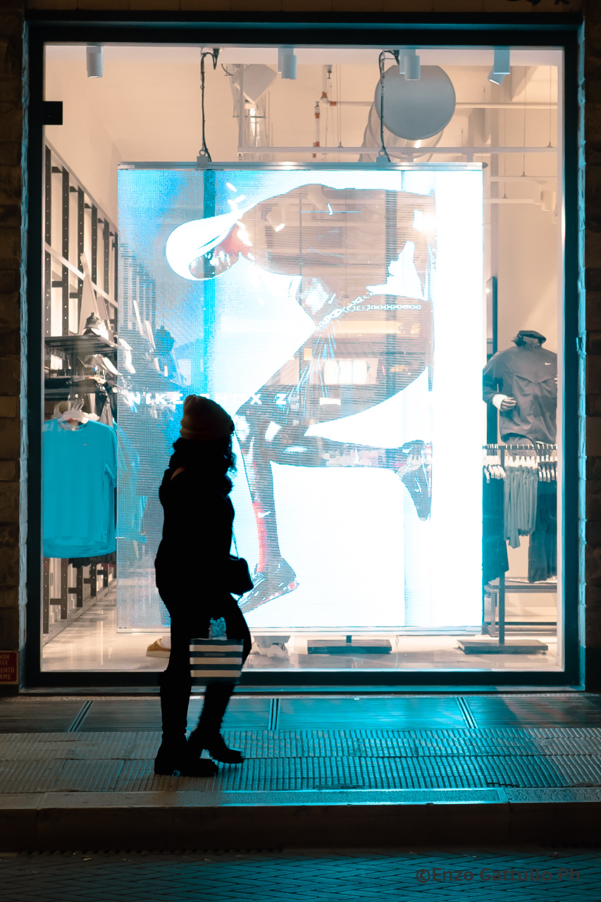 Hai colto bene il momento e sfruttato altrettanto bene la luce della vetrina, creando una quasi silhouette.