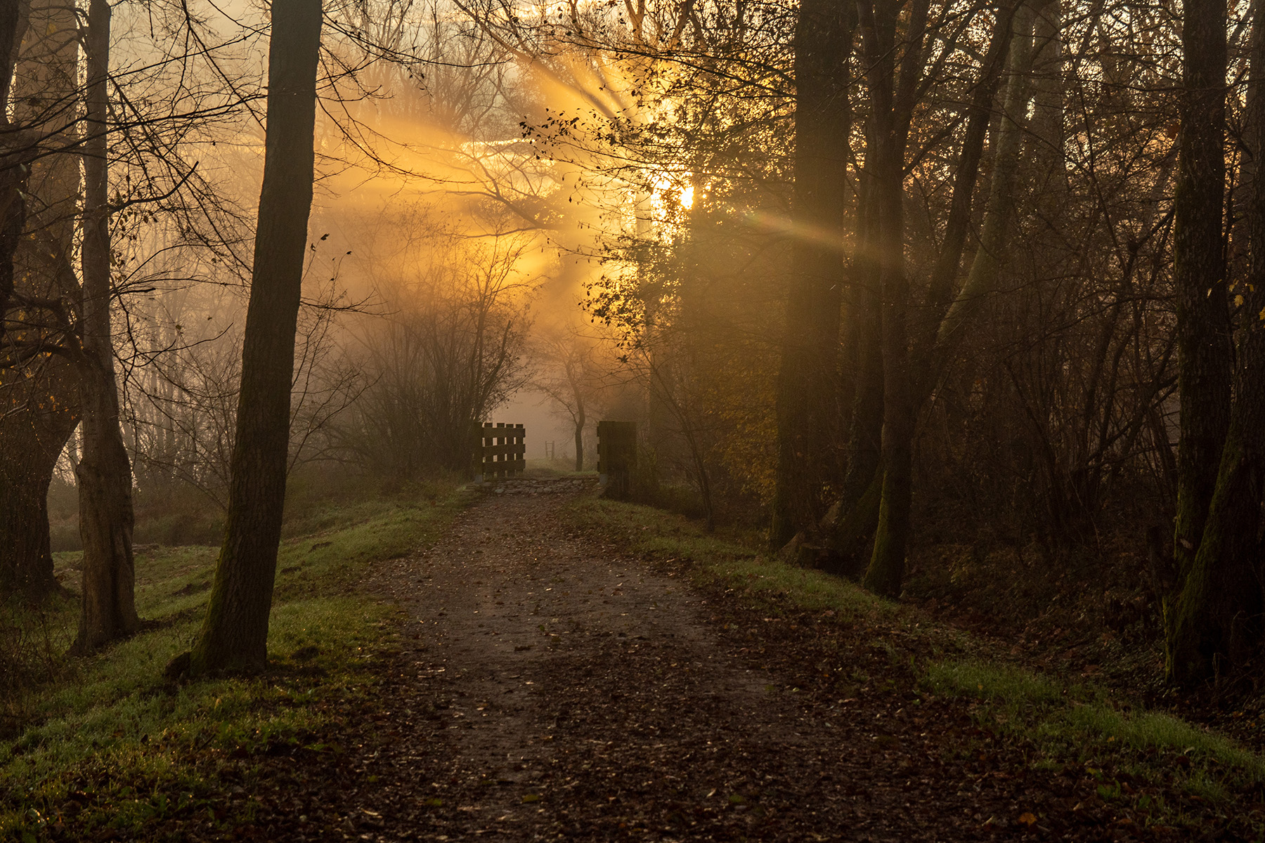Bellissima proposta Elis, il ponticello divide la foto in due parti, quella reale da quella onirica, fatta di nebbie e luci avvolgenti.