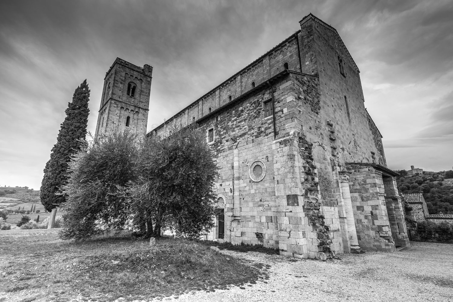 Per raddrizzare le linee cadenti avresti avuto bisogno di una ripresa più ampia. Ti invio una mia reinterpretazione del bianco e nero.