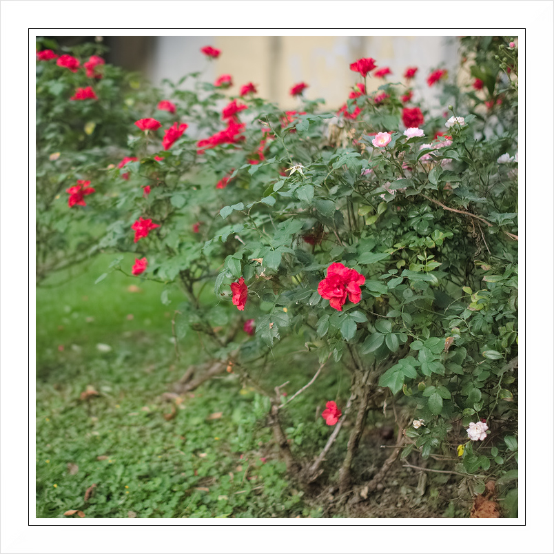 Semplice ma naturale: Desaturerei appena appena le rose di secondo piano e sfondo in modo da rendere graduale il passaggio tonale parallelamente a quello dello sfocato. Ciao Ciao