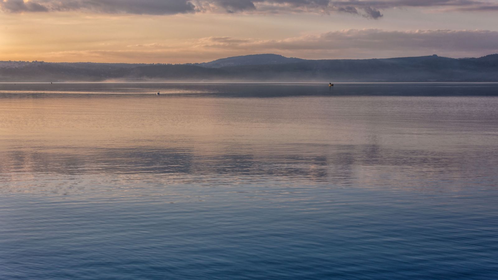 La quiete del lago, mi ricorda le atmosfere sospese del Garda . I toni sono delicati ed ammalianti, la barchetta solitaria in lontananza completa ed arricchisce lo scatto