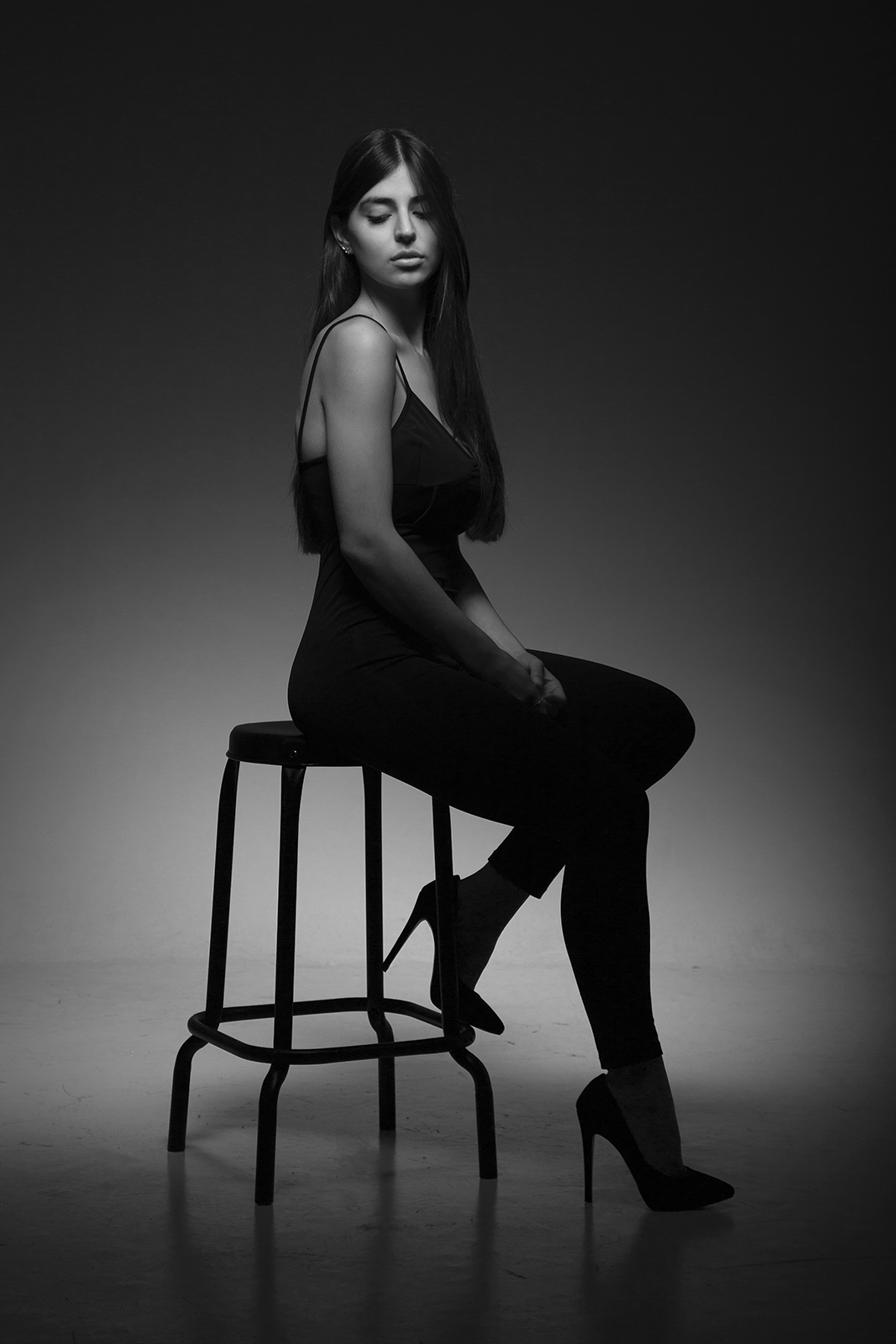 A me piace molto questa luce soffusa e delicata che scende a doccia dall'alto sulla modella. Ben illuminato il viso e man mano la sfumatura scura che avvolge il corpo me la fa apprezzare molto.