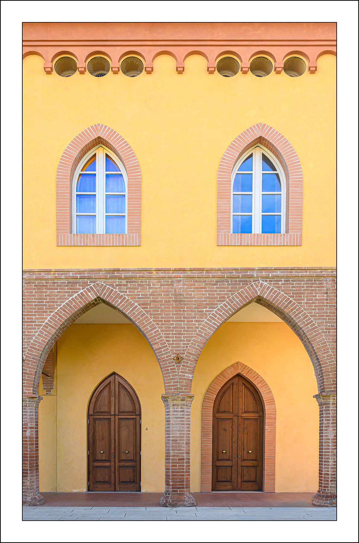 | L'immagine cattura una simmetria perfetta in una facciata architettonica che gioca abilmente con i colori e le texture, creando una composizione estremamente equilibrata.È pulita, e bilanciata, trasformando un semplice frammento di un edificio in un soggetto con una valenza pittorica. Ciao Gianni. |