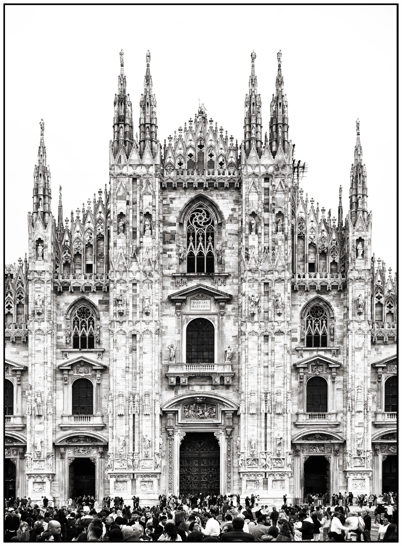 Mi piace questo bn e anche il cielo così bianco uniforme aiuta a staccare la porzione di facciata del duomo.