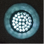 Un cerchio di cerchi concentrici con concentrati in centro altri circoletti. Direi che l'autore s'è affidato al significato geometrico del O del titolo, ma potrei anche sbagliare Pallonaro La visione geometrica è stata rinchiusa in un rigoroso formato quadrato, anche se non perfettamente centrato, acc! Wink