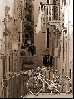 Solo nelle cittadine che hanno un centro storico antico, dove il cuore della città continua a pulsare lontana dal traffico della metropoli che pulsa attorno, che si possono cercare e trovare angoli e visuali di questo tipo.. Spazi ristretti, vicoli angusti, dove la luce del sole comanda, nelle zone alte, ma in basso non arriva mai.. è solo quella che i panni stesi ad asciugare, i fili, i balconi, permettono di far arrivare fino in basso.. Tutti gli elementi danno un senso di vita, di movimento che nel cuore della città si muove nel silenzio e nella frenesia, nascosta all'occhio fugace e poco attento.. Bella la presenza della bici, che sottolinea anche una delle poche possibilità di spostamento, in questi vicoli stretti.. Bella anche nel viraggio, e nella scelta della regolazione della luce.. Smile