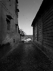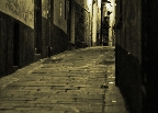 Tutto sfocato in primo piano: l'occhio dell'osservatore è focalizzato su quel movimento in fondo, una presenza, prima nascosta, apparsa appena girato l'angolo. Scena usuale in molti paesi in cui nei vicoli bui di tanto in tanto si fa spazio qualcuno, sbuca un bambino a giocare o un gatto in cerca di cibo, oppure ci si ferma un istante per una chiacchiera, un saluto dopo il quale subito si rincasa, e quella presenza così breve quanto evanescente resta soltanto un'immagine catturata.