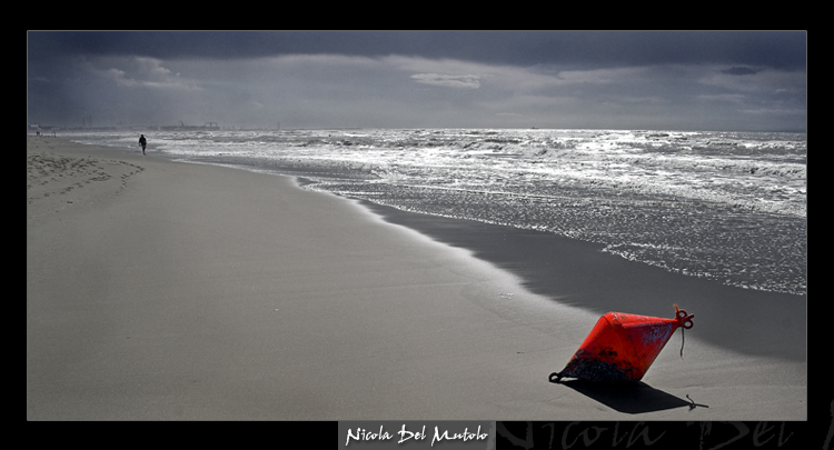 Per ultimo vale la pena di notare come la luce radente contribuisca a rendere più affascinante la superficie della sabbia, che fa da "supporto" al cammino del personaggio.